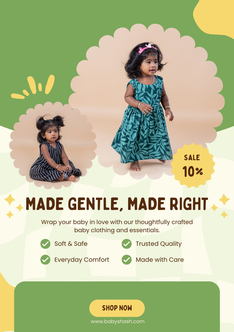 Made with gentle fabrics that are safe for your baby’s delicate skin.