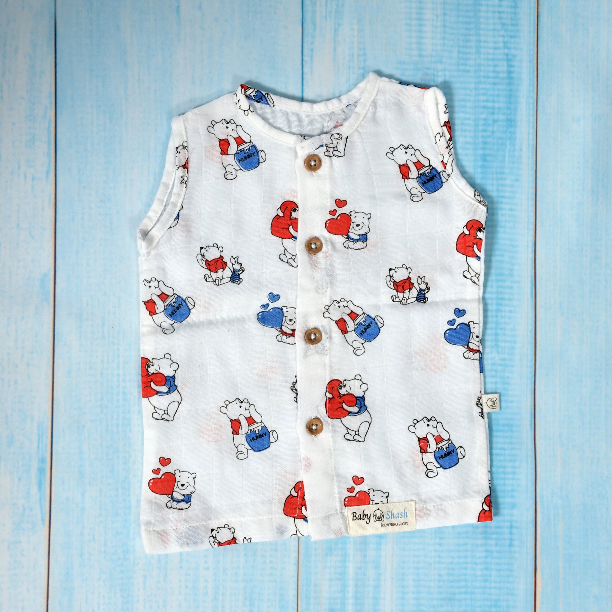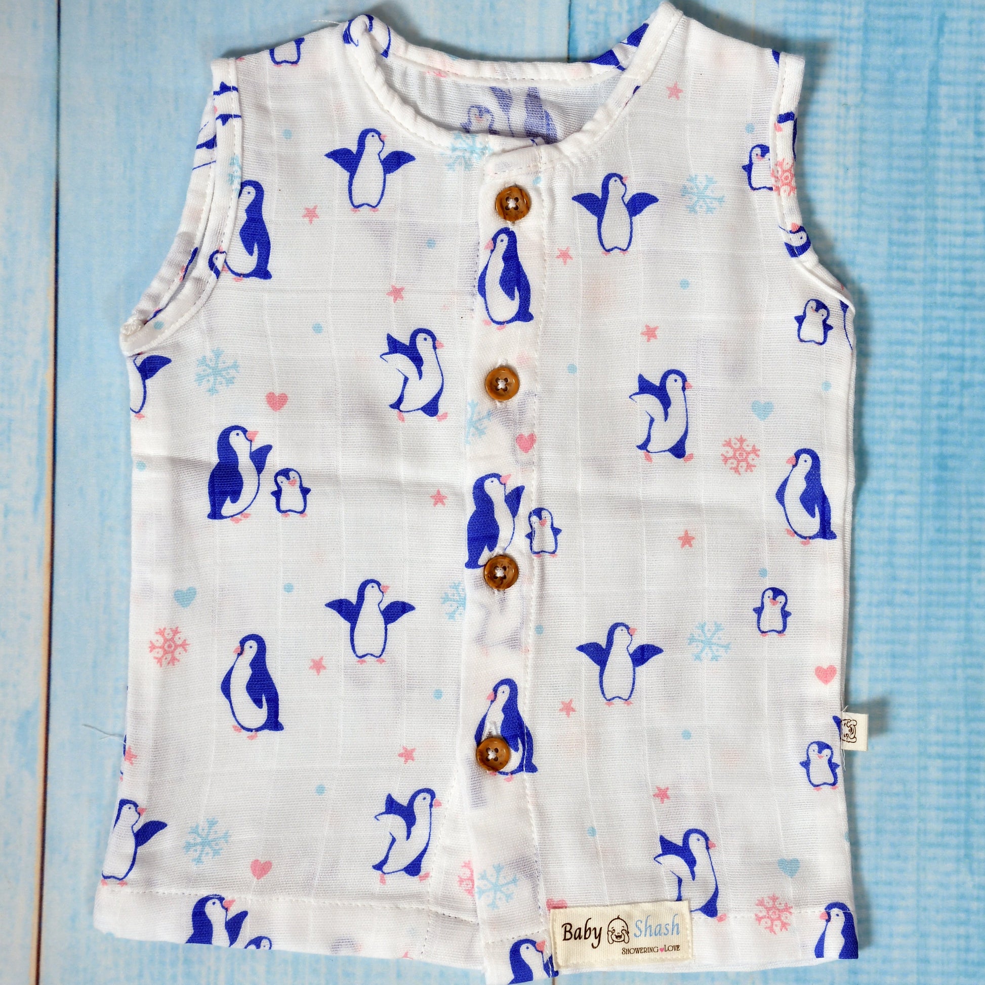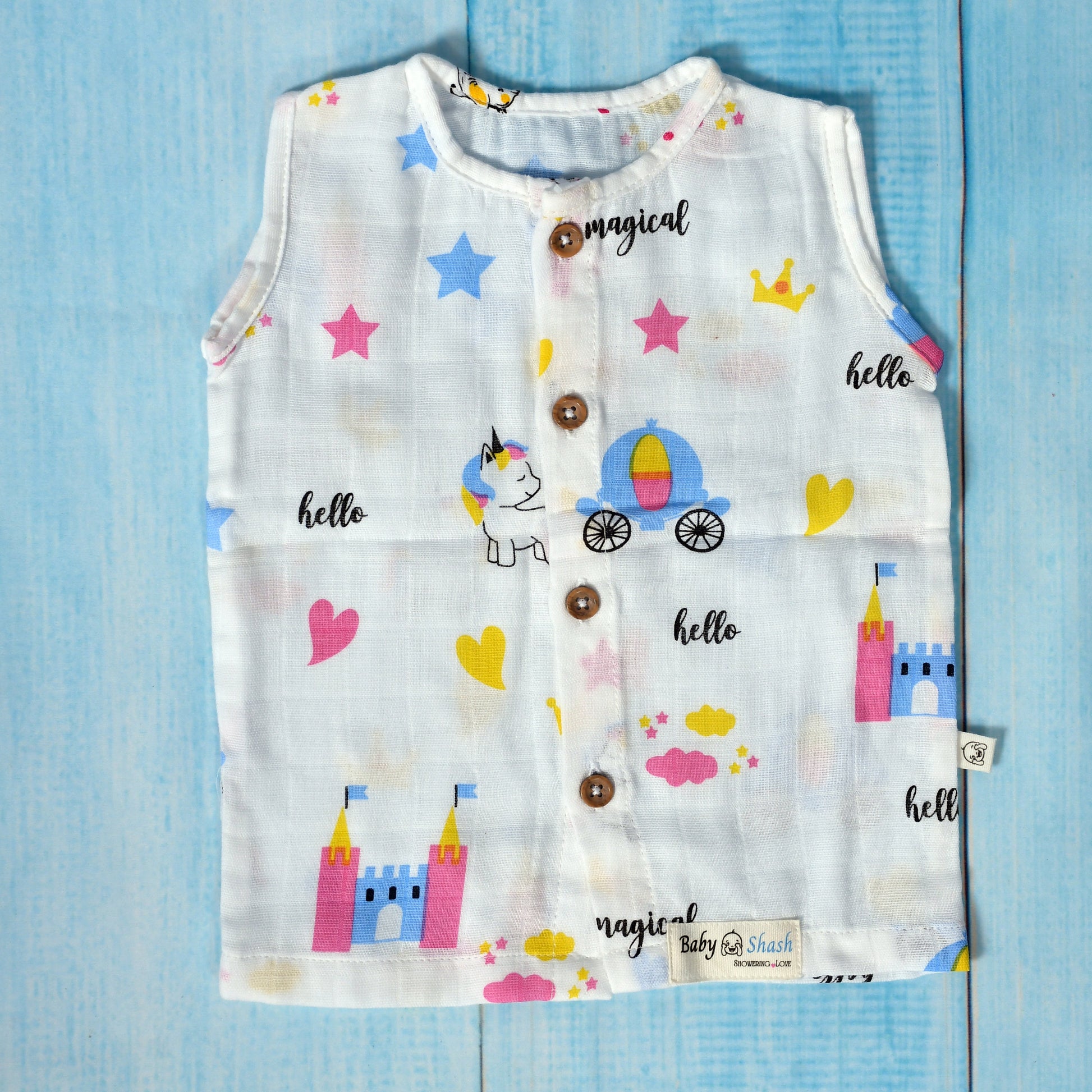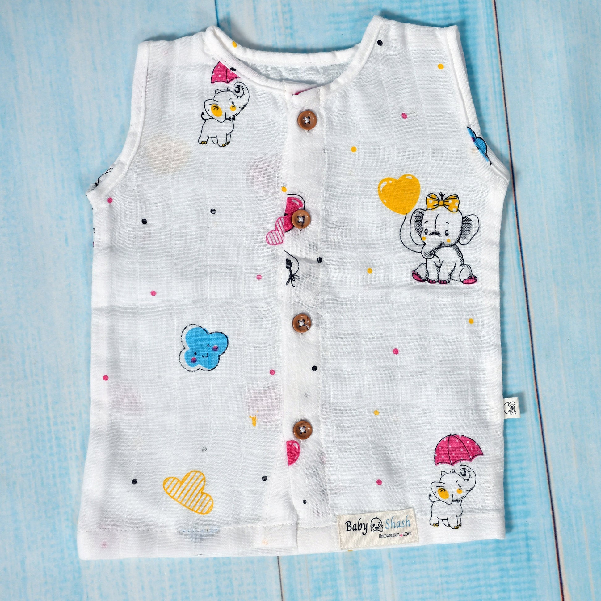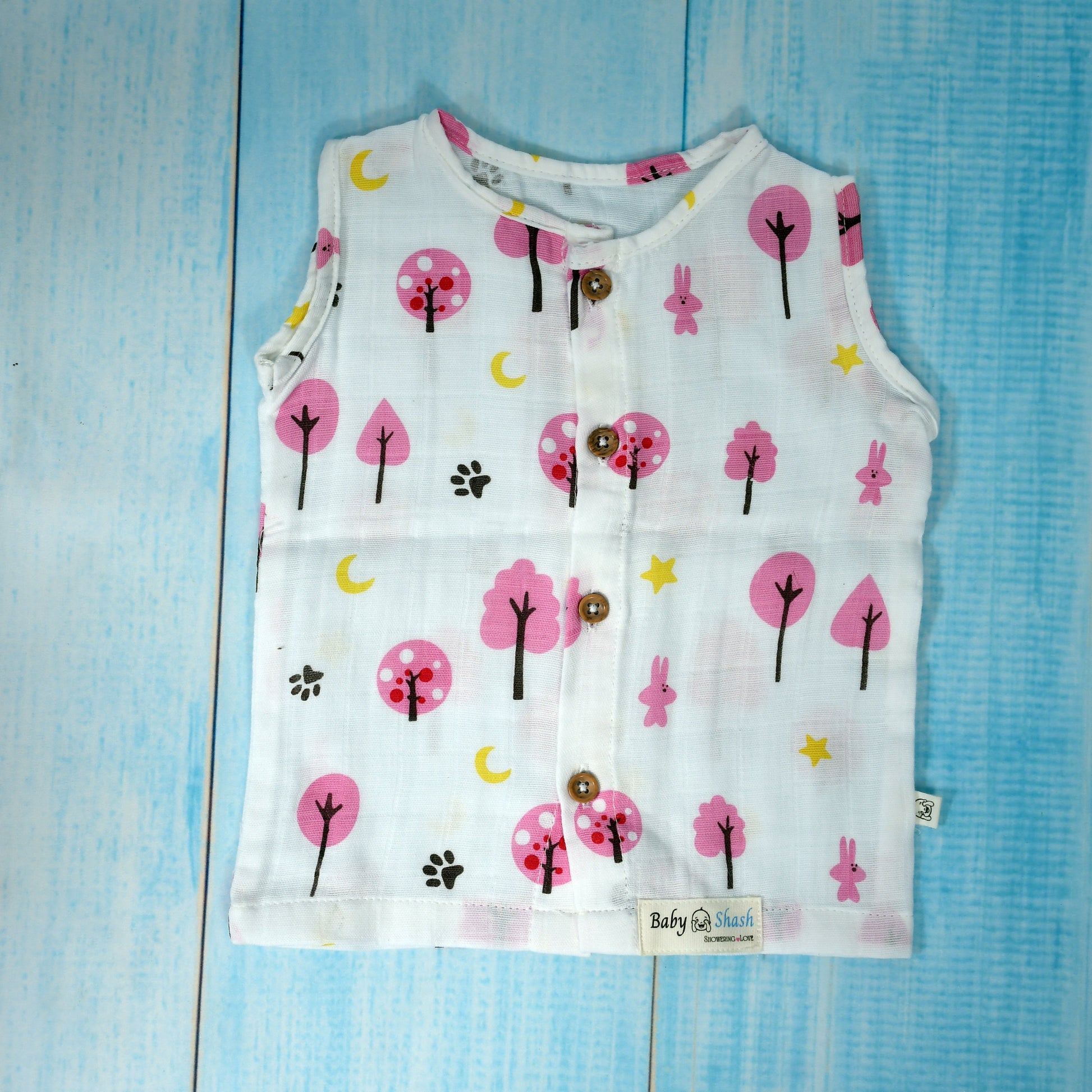 Wrap your little one in comfort and care with our 100% organic muslin cotton jabla. Crafted with love, this sleeveless top is gentle on delicate baby skin and completely free from harsh chemicals, dyes, and synthetic materials.